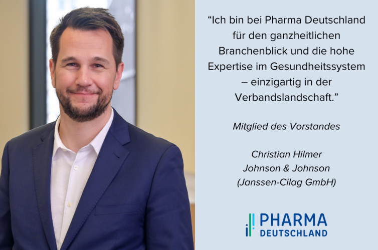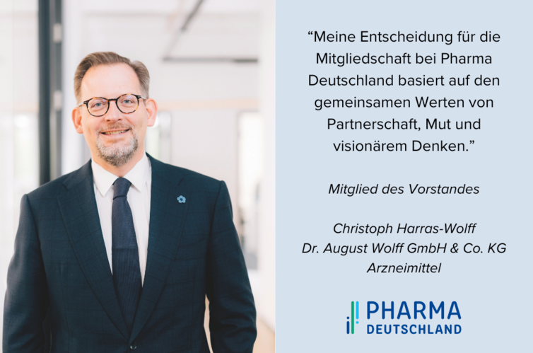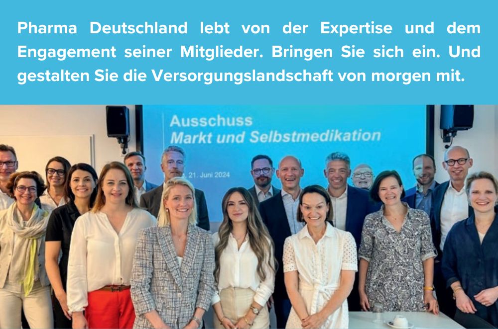 „Ich verspreche Ihnen: Pharma Deutschland treibt die politische Trendwende mit aller Kraft voran. Wir streiten für gute Rahmenbedingungen für unsere Mitglieder und zeigen Verantwortung für das Gesundheitssystem. Zudem wollen wir Ihr Dienstleister sein. Gerne unterstützen wir Sie auch bei rechtlichen und strategischen Fragestellungen und stellen Ihnen unsere Kommunikationskanäle zur Verfügung, um an Sichtbarkeit zu gewinnen. Nutzen Sie die einmaligen Chancen, die Ihnen Pharma Deutschland bietet – und bringen Sie Ihr Know-how bei uns ein. Sie werden davon profitieren.“