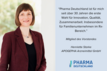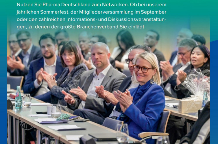 „Warum Sie sich bei Pharma Deutschland engagieren sollten? Weil es sich lohnt. Für Sie persönlich, für Ihr Unternehmen und für Deutschland als Pharmastandort. Pharma Deutschland ist DIE kraftvolle Stimme der pharmazeutischen Industrie. Erfahren Sie, was wir für unsere Mitglieder in Brüssel, Berlin und den deutschen Regionen leisten. Welch einzigartiges Know-how der Verband in die Waagschale wirft, um Herausforderungen gemeinsam zu meistern. Kommen Sie zu uns. Sie werden es nicht bereuen.“