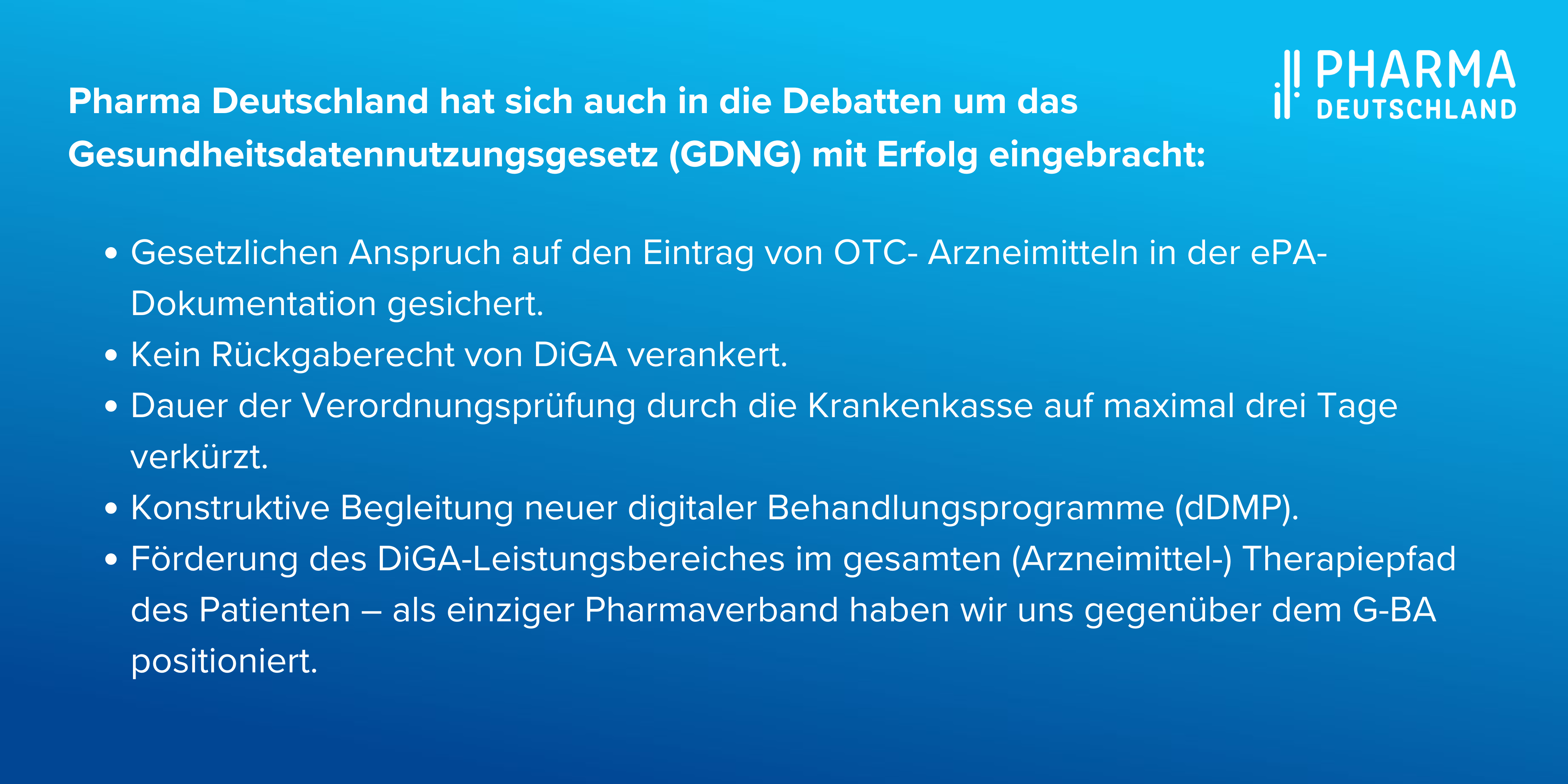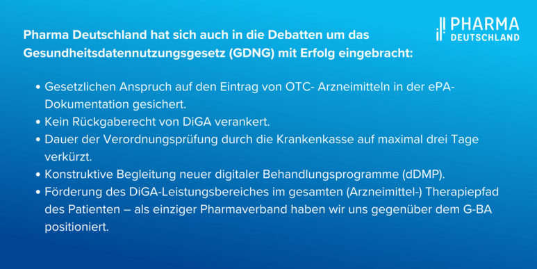 Pharma Deutschland hat sich auch in die Debatten um das Gesundheitsdatennutzungsgesetz (GDNG) intensiv eingebracht. Mit Erfolg:
