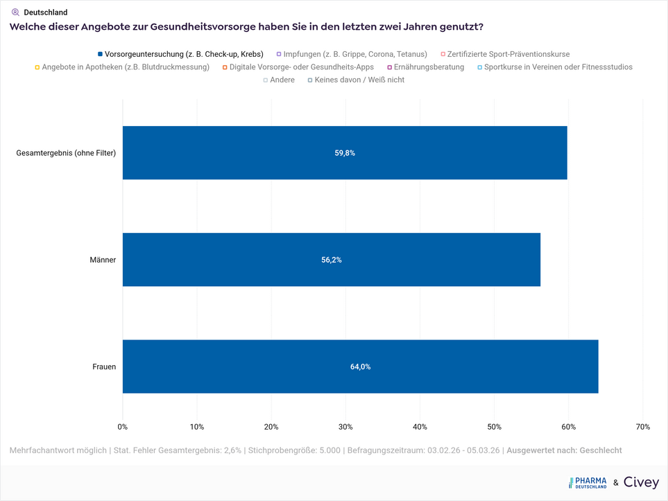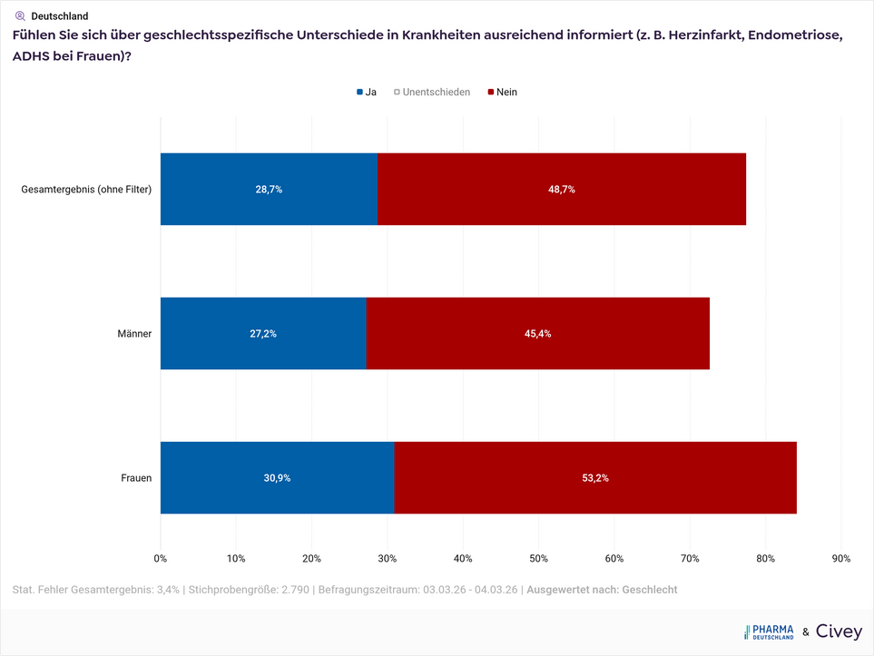 Aktuelle Daten aus der Civey Umfrage von Pharma Deutschland belegen einen messbaren "Gender Health Gap“.
