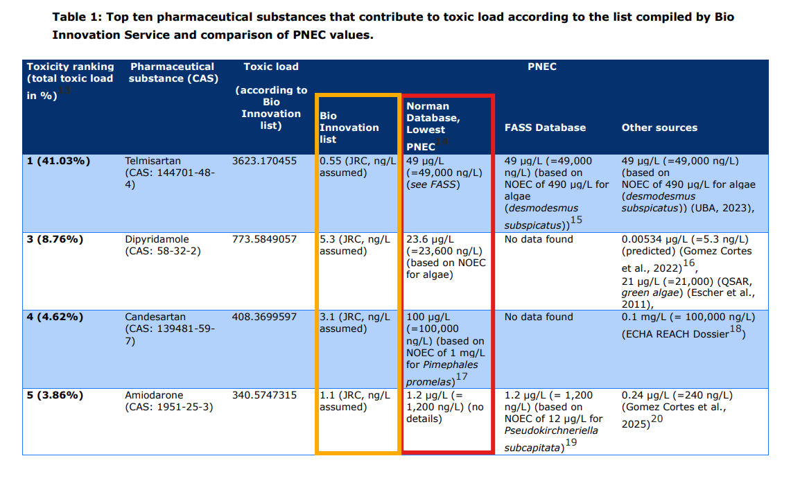 Der europäische Pharma-Verband „Medicines for Europe“ (MfE) hat im Juli 2025 die Stoffliste der EU-Kommission hinsichtlich der Frage analysiert, ob die angegebenen PNEC-Werte (Predicted No Effect Concentration) durch veröffentlichte Daten bestätigt werden können. Zum Hintergrund: PNEC-Werte beschreiben, bis zu welcher Konzentration eines umweltschädlichen Stoffes sich keine Auswirkungen auf die Umwelt zeigen.