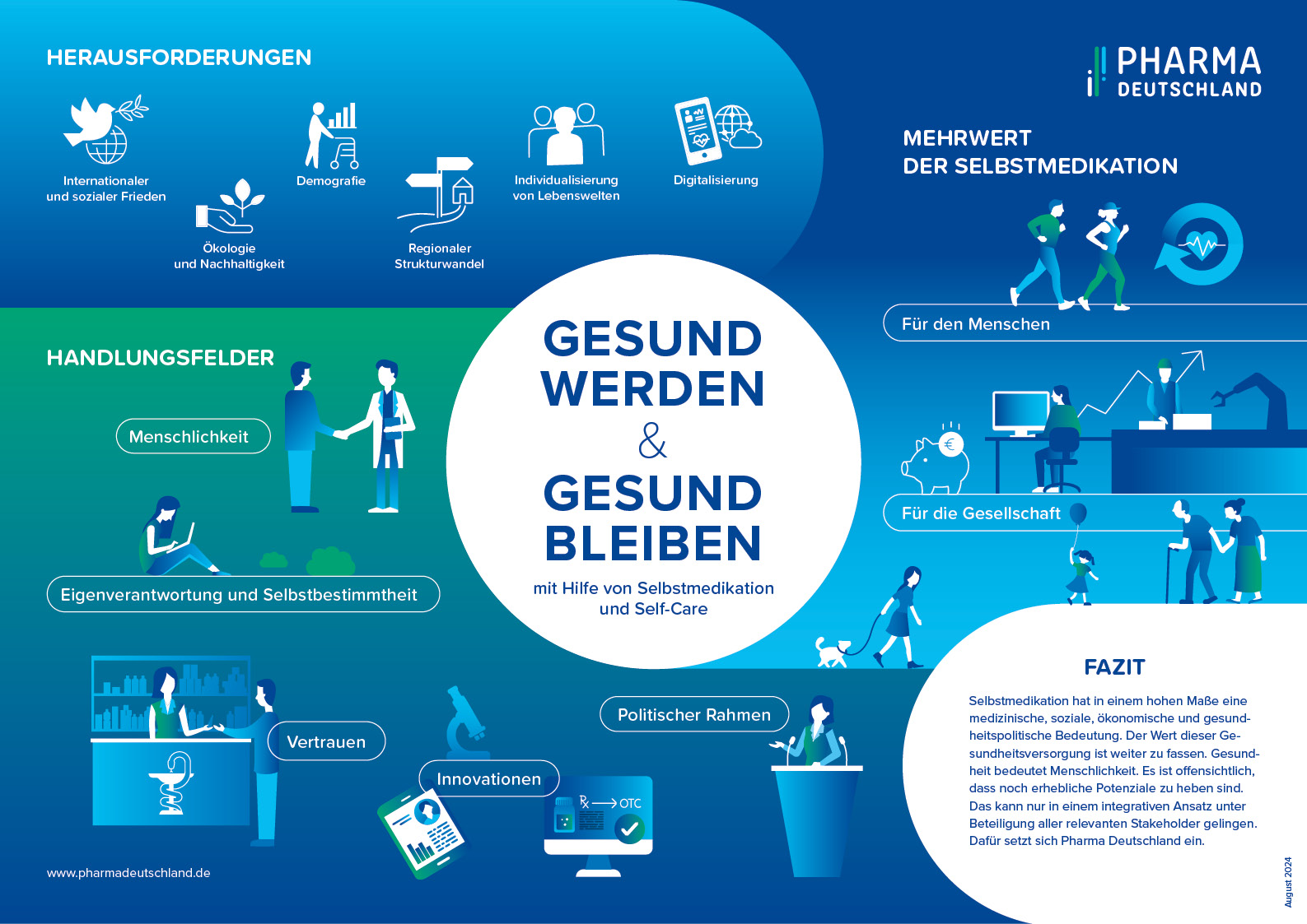 Die Selbstmedikation mit rezeptfreien Arzneimitteln ist eine wichtige Säule der Arzneimittelversorgung. Auch stoffliche Medizinprodukte und weitere Gesundheitsprodukte sind bedeutsam für eine umfassende und vielfältige Gesundheitsversorgung. Nachfolgend wird erläutert, was dahintersteckt und welchen Wert die Selbstbehandlung mithilfe der Apotheke für den Einzelnen und die Gesellschaft hat. Außerdem werden die Arzneimittel der besonderen Therapierichtungen vorgestellt.